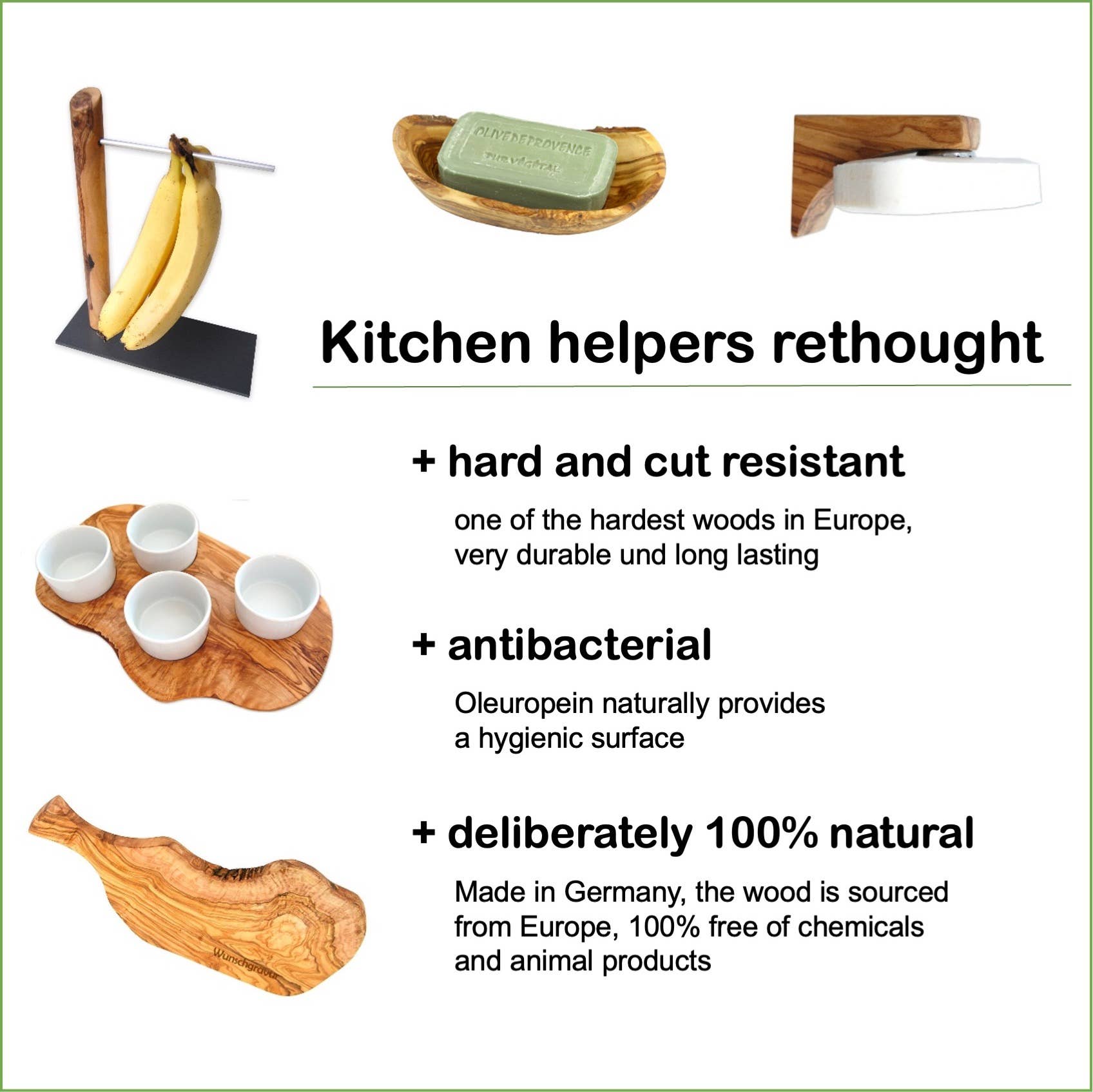 Razor with handle made of olive wood type “Makalu” with razor stand HELGOLAND. Suitable for all types of razor blades. Length 13.5 cm
