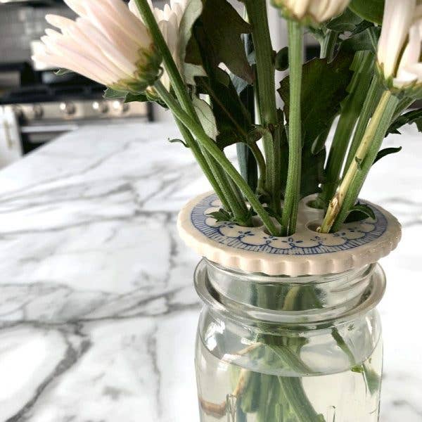 Flower frogs are perfect for arranging flowers or propagating multiple herbs in an organized and uncluttered way! Pop these flower frogs on top of a mason jar- the bottom ridge keeps it safely in place. A popular and unique gift item! (Mason jar is not included.)