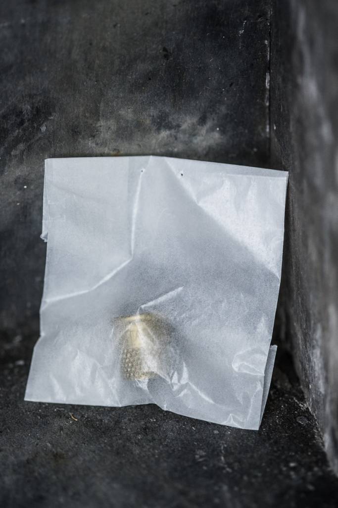 Solid brass tailor’s thimble with a hole at the top – engraved ‘Merchant & Mills’.