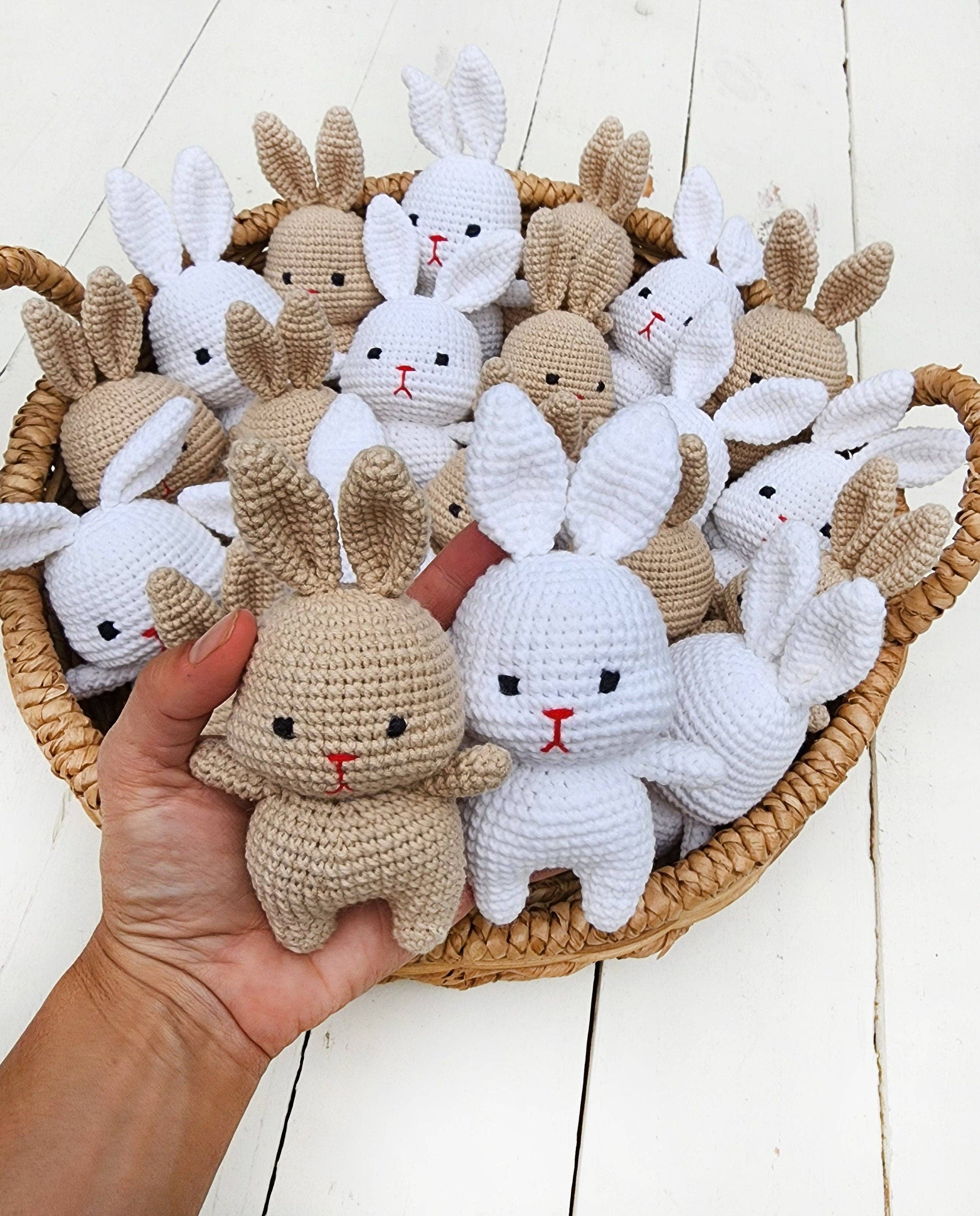 Natural Cotton Crochet MINI Bunny dolls each bunny measures 5.5 inches from tip to tip ♥ Baby's First Toy & Baby's Natural Security Blanket Forest Friends Doll Toys ♥ NATURAL AND SAFE FOR OUR CHILDREN AND OUR PLANET – We are always looking to make our baby products with Healthier alternatives, Montessori Learning and Eco Friendly materials.