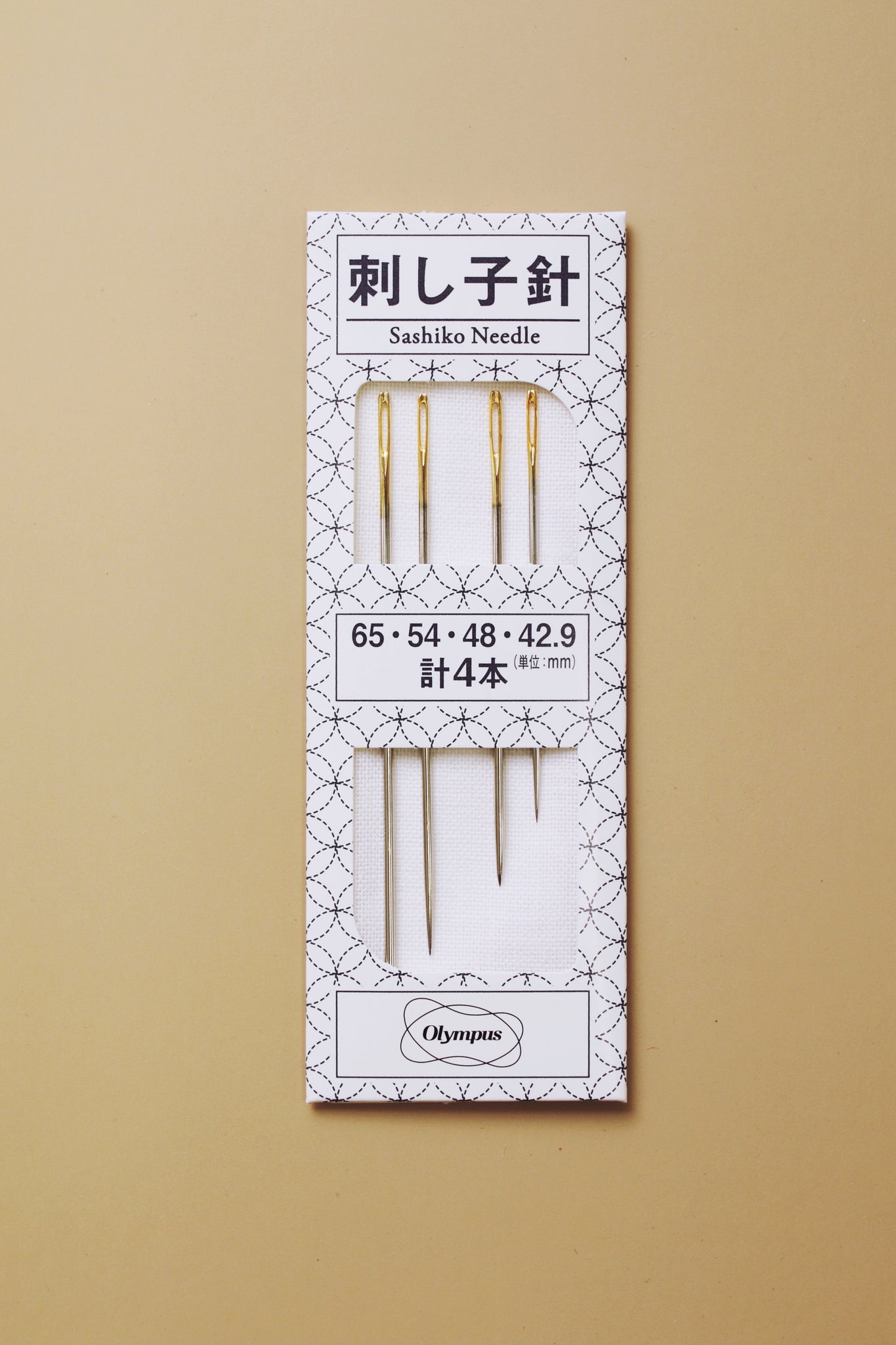 Pack includes four Sashiko needles with a large eye for easy threading. It contains needles of different sizes: 1 5/8", 2", 2 1/8", and 2 1/2". The shorter needles are perfect for smaller and decorative designs, while the longer ones are ideal for long straight stitches and basting. Made in Japan.