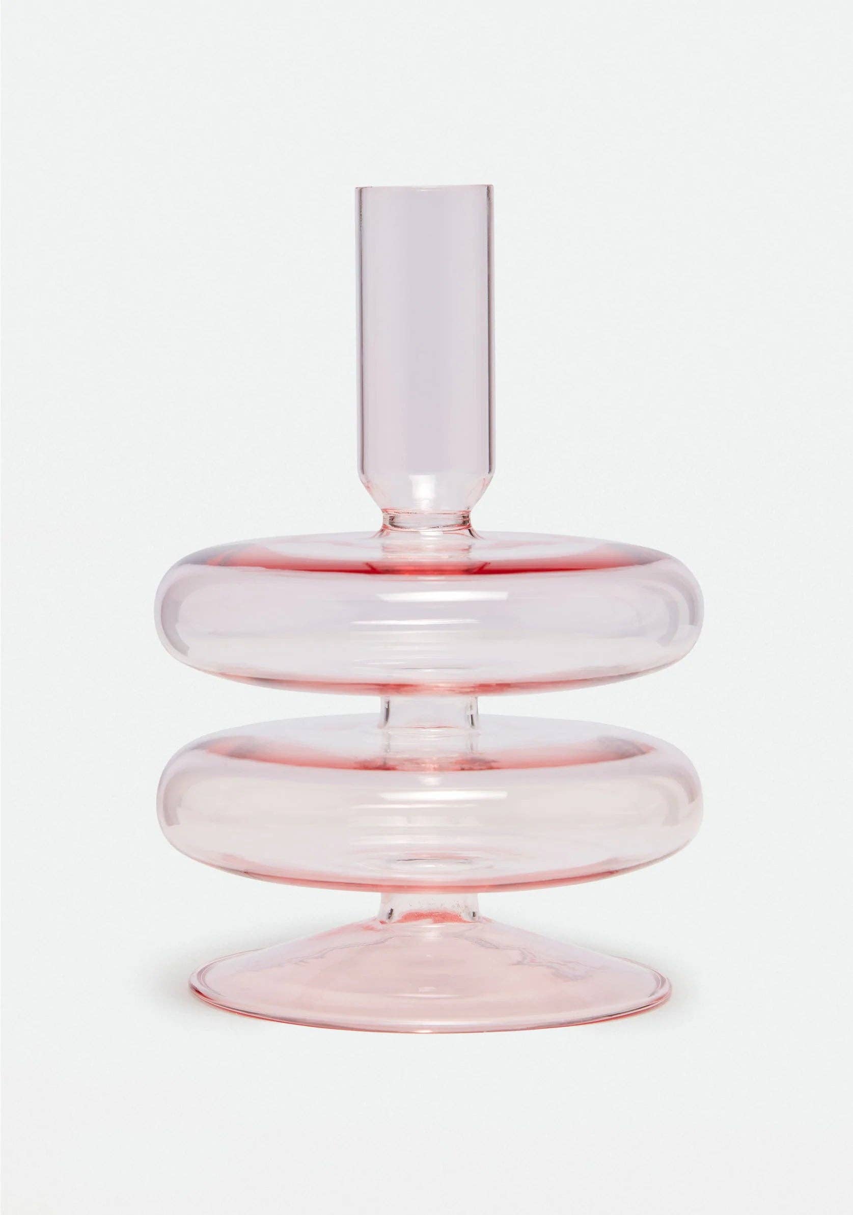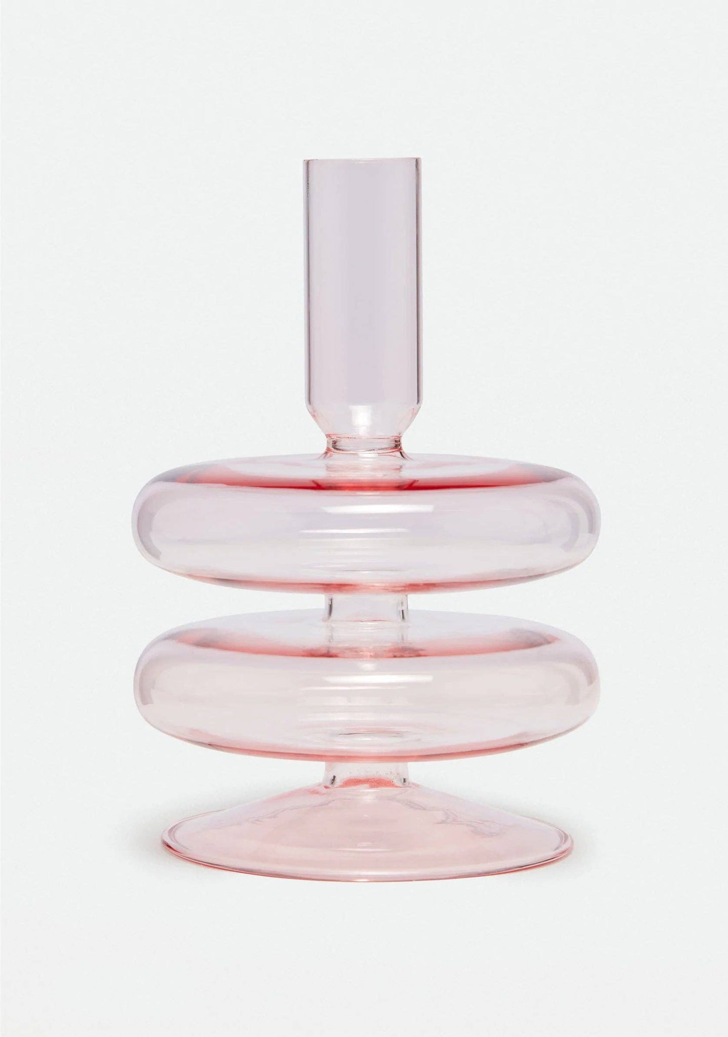 A distinct hand-blown glass vase, ideal for creating a retro aesthetic in any setting or for being used as candle holders.