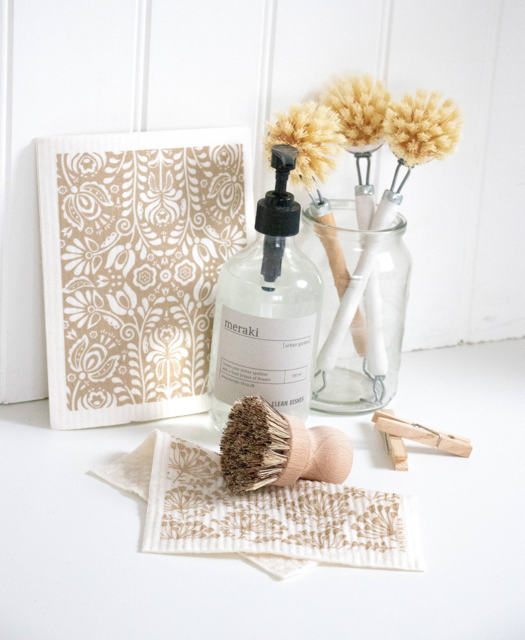 These sponge cloths are guaranteed to bring fresh Scandinavian style into your kitchen. Used in Swedish kitchens since the 1950s, these tried and trusted dishcloths are made of all natural and renewable materials. Highly durable, they are great for washing up, general cleaning and mopping up spills. Matching kitchen towels are available to keep your kitchen looking smart and coordinated. Highly absorbent, they can absorb 15 times its own weight in water. Machine washable. Designed by Jangneus in Sweden. Size: W6.75"x L8". 100% biodegradable. Made of 70% cellulose and 30% cotton