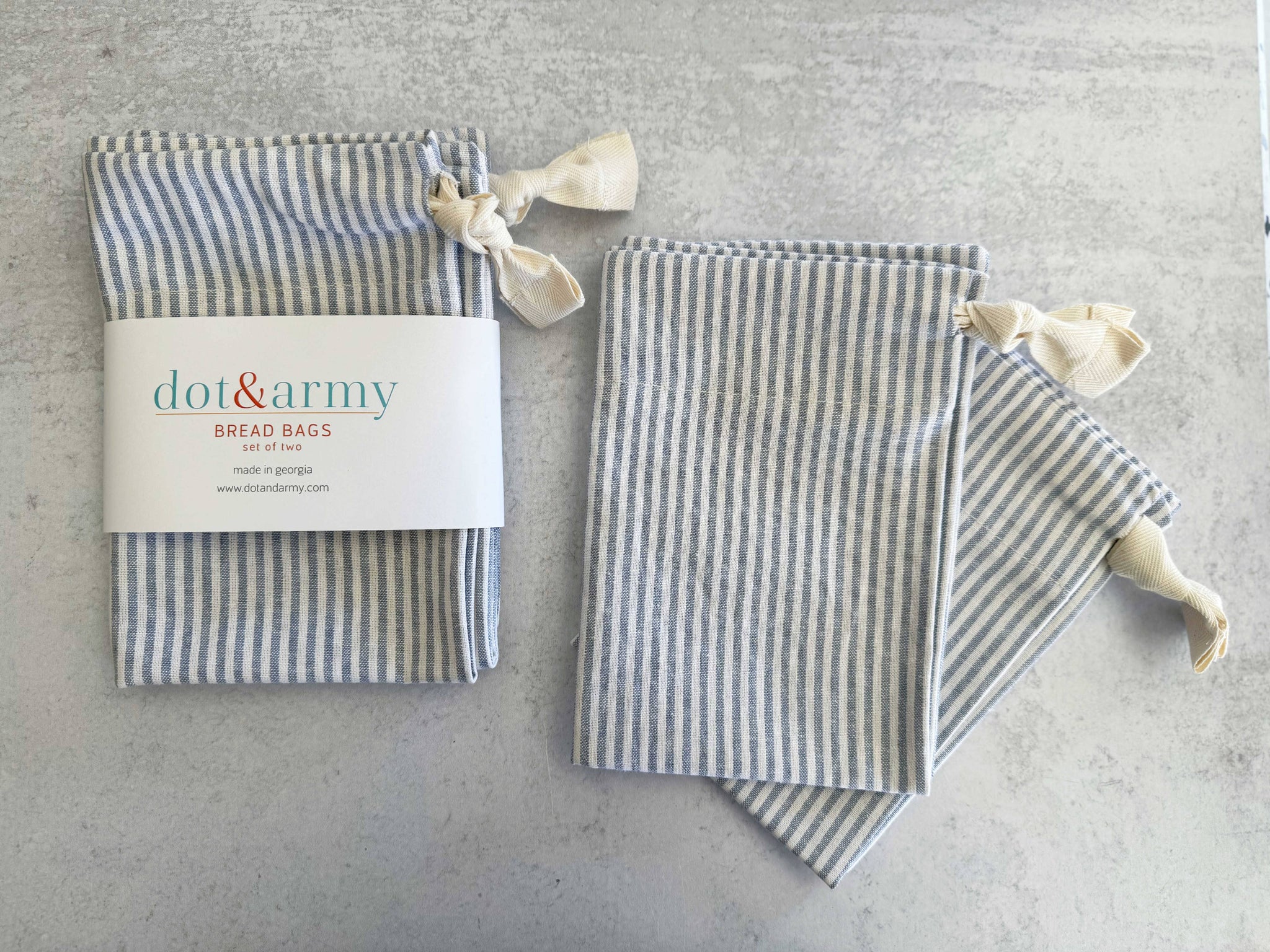 Dusty Blue Stripe Linen Bread Bags, set of two