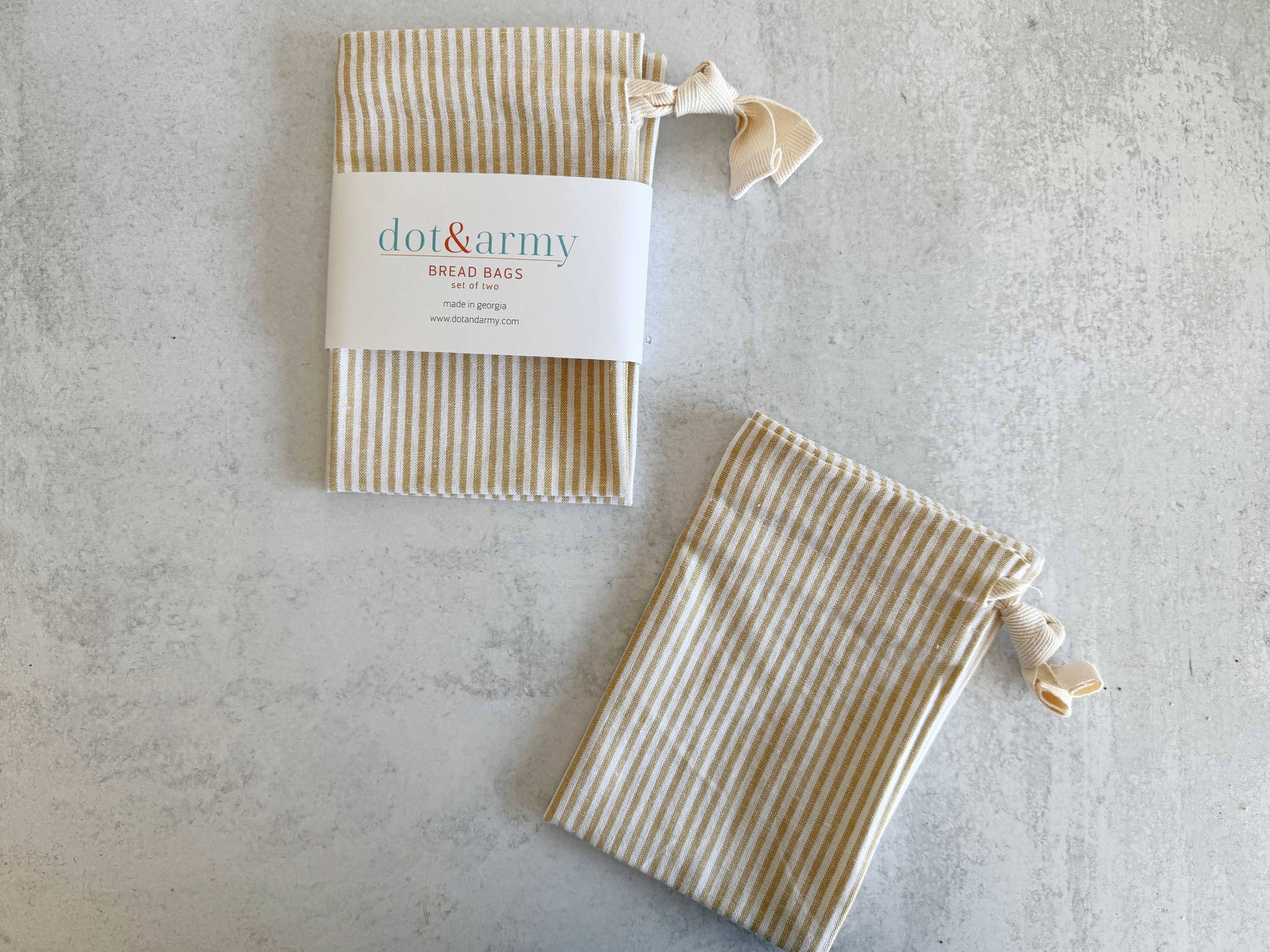 New! Linen blend bread bags in a honey stripe linen blend.