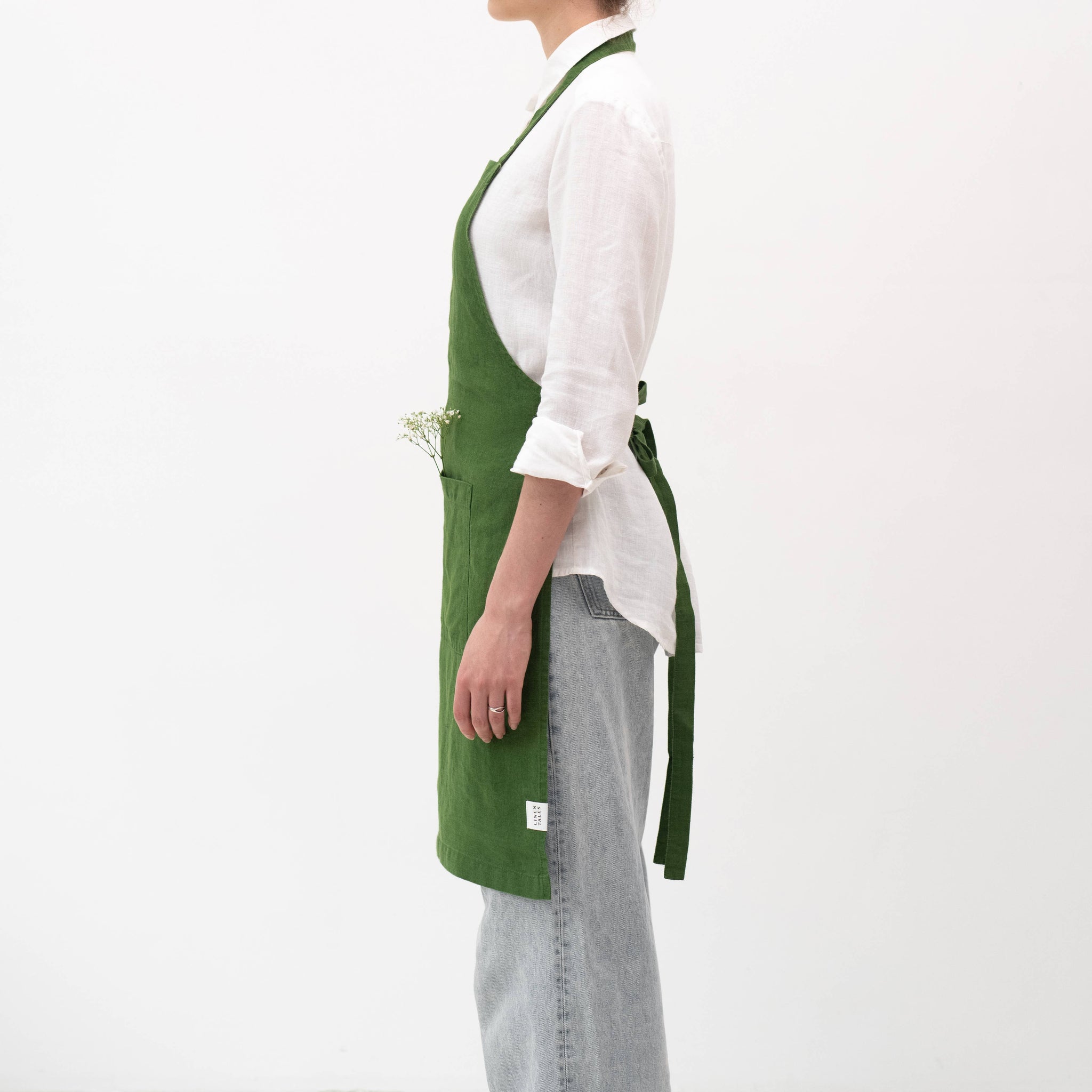 Two front pockets are perfect for storing things you want to have at hand - Tie closure lets you comfortably adjust the size - Suitable for petite sized people - 100% linen, 215gsm - Stone washed for extra softness - Handmade with love in Lithuania - OEKO-TEX® and EUROPEAN FLAX® certified linen fabric EASY CARE: Machine washable (104°F/40°C); tumble dry on low heat; wash separately or with similar colors. Wrinkling is part of linen's charm – the wrinklier the fabric, the purer it is. We do not recommend ironing your linens but if you must, do it on low heat when the garment is still a little damp.