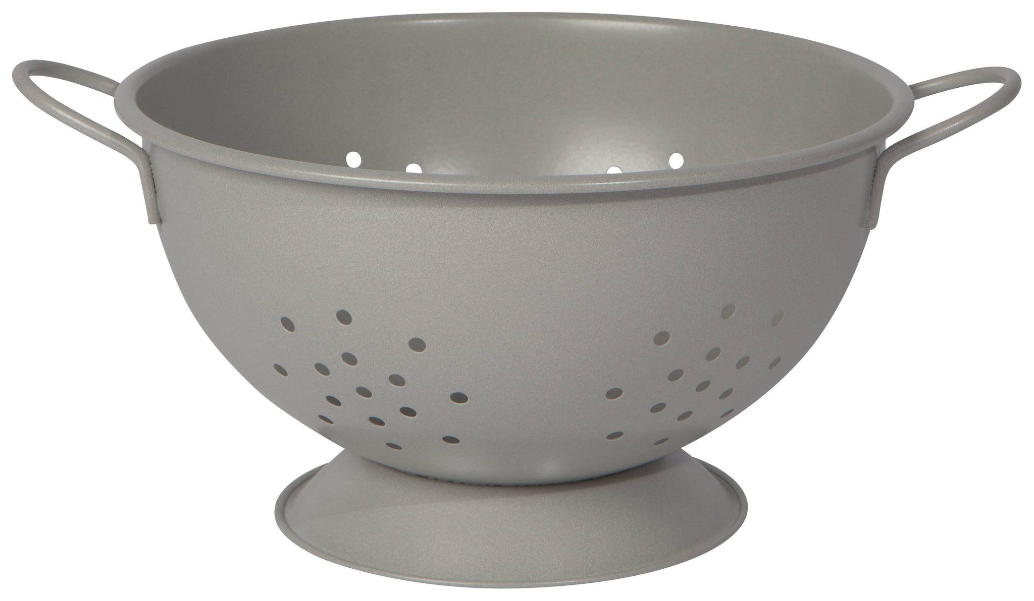 Complement the color scheme of your kitchen with the elegant, neutral tone of this Large Matte Fog Gray Colander from Now Designs. Made from powder-coated steel, our practical colanders are long-lasting additions to home kitchens. They're ideal for everyday meal prep tasks such as straining pasta, rinsing fruit, and washing salad greens. With an elevated flat base for added stability on countertops, they also make an eye-catching bowl for fresh-picked veggies from the garden.