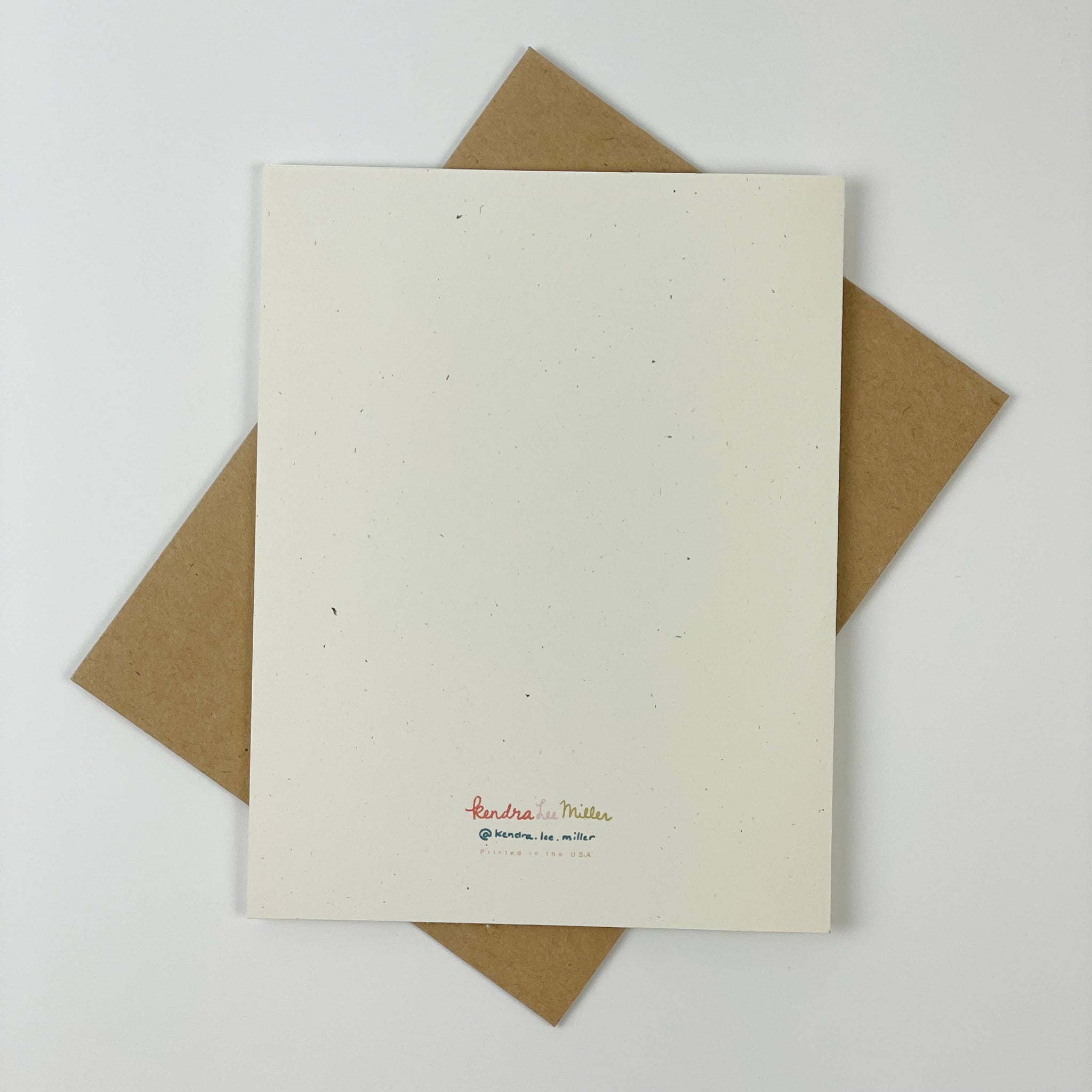-Printed on recycled 100 lb white speckletone cardstock with archival ink.