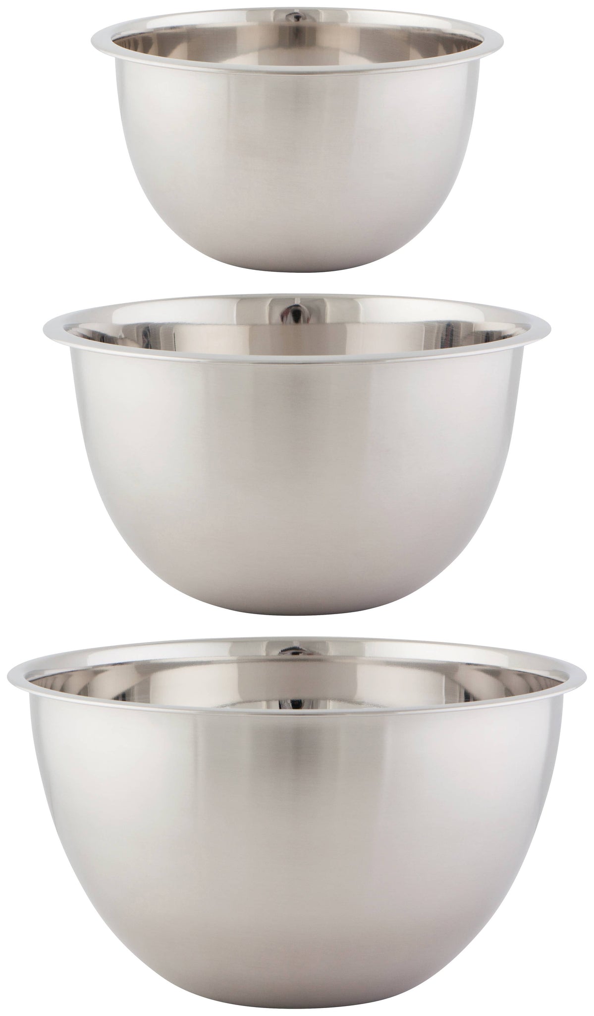 Brushed stainless steel nesting mixing bowls are perfect for any kitchen task. From prepping, mixing or serving, this set of 3 stainless steel bowls are a great addition to your kitchen essentials. Size: D7xH3.57 / D9xH4.75 / D10.25xH5in Material content: Stainless Steel Care instructions: Dishwasher Safe