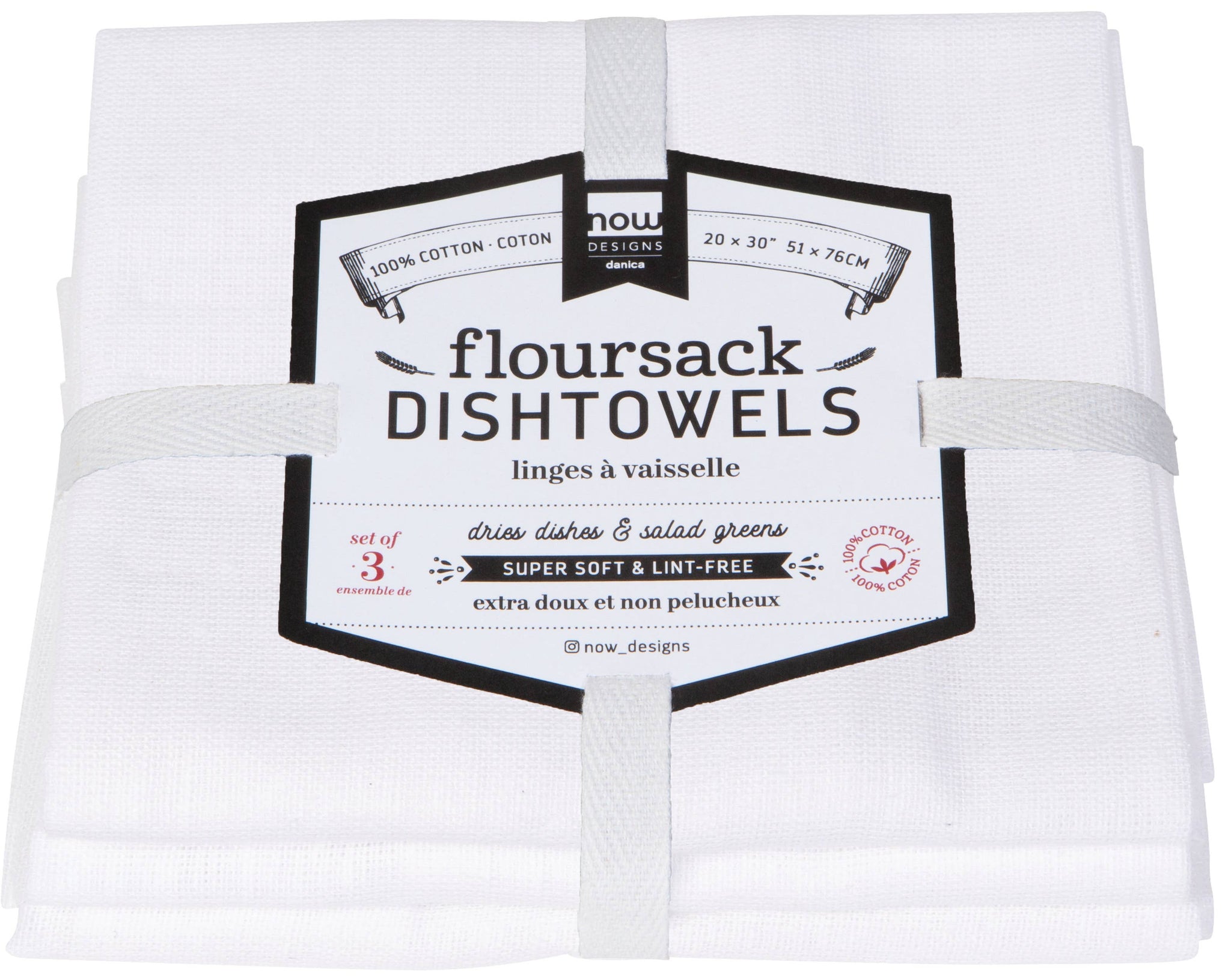 Flour Sack dishtowels are a must-have necessity for every kitchen. Fill your linen drawer with the perfect simplicity of these White Flour Sack Towels by Now Designs. Their crisp white color meshes perfectly with any kitchen space. At 20x30 inches, these generously sized towels are larger than standard dishtowels. • size: w20 x l30in • material content: 100% cotton • care instructions: machine wash warm, tumble dry low, high iron, do not bleach.