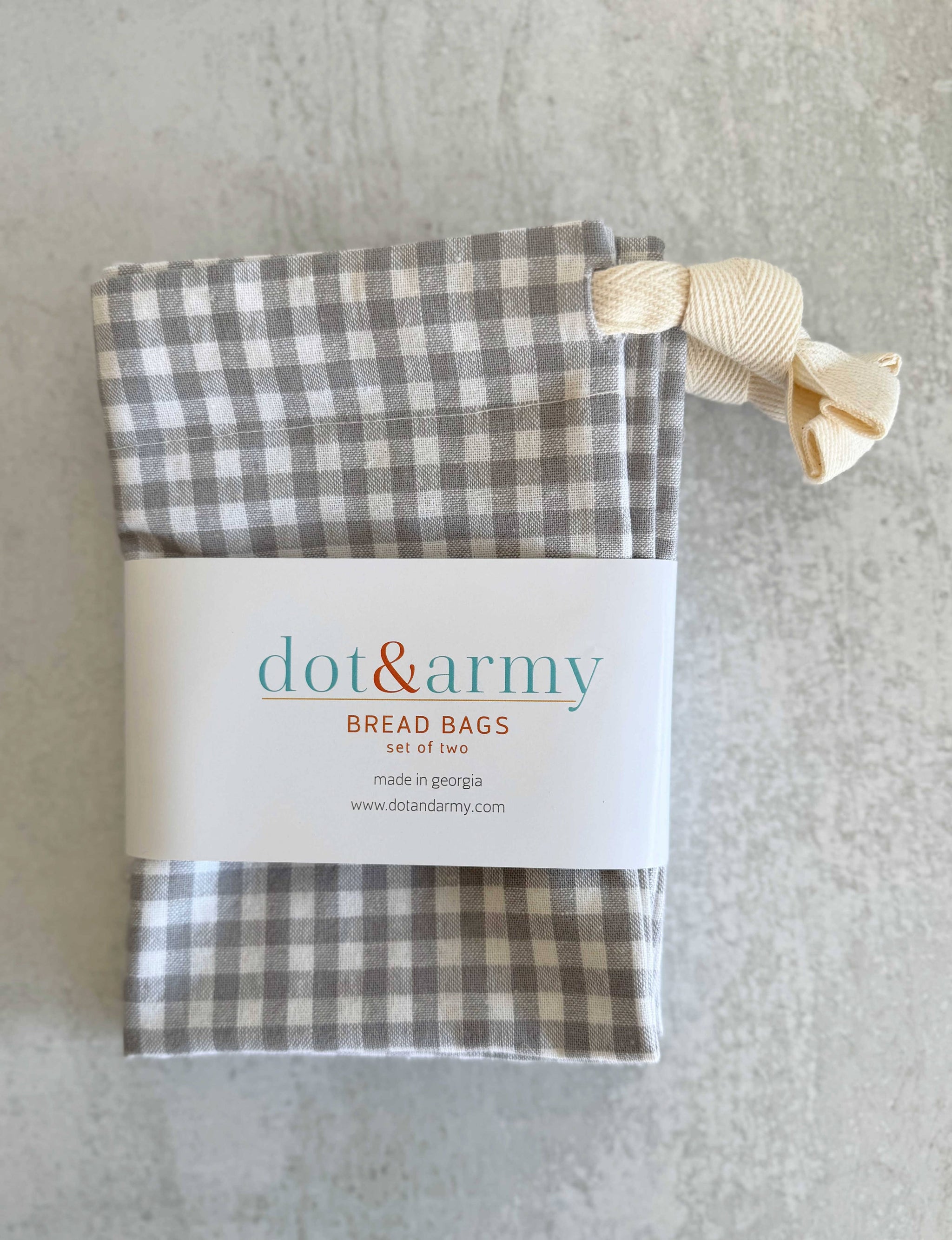 New! Linen blend bread bags available in wheat and silver check.