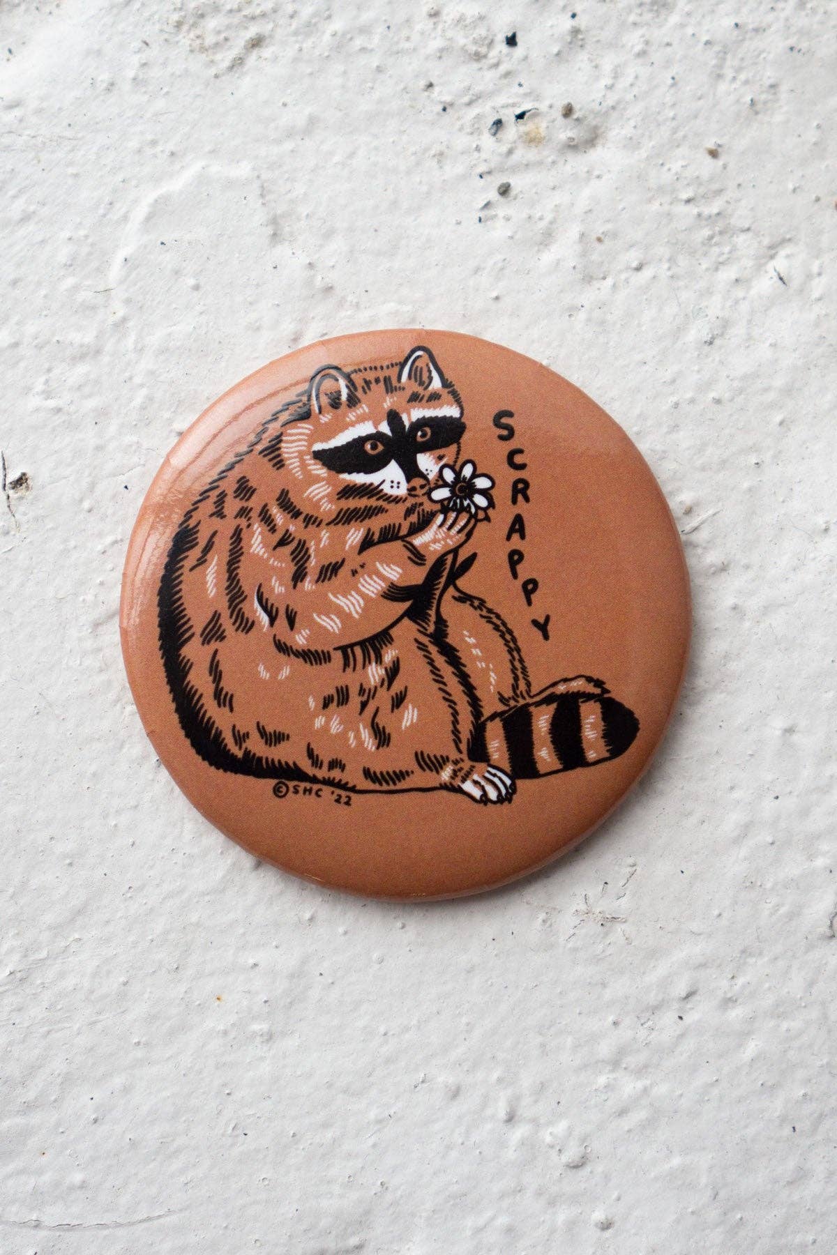 2.25" round magnet featuring our "scrappy" raccoon pal.