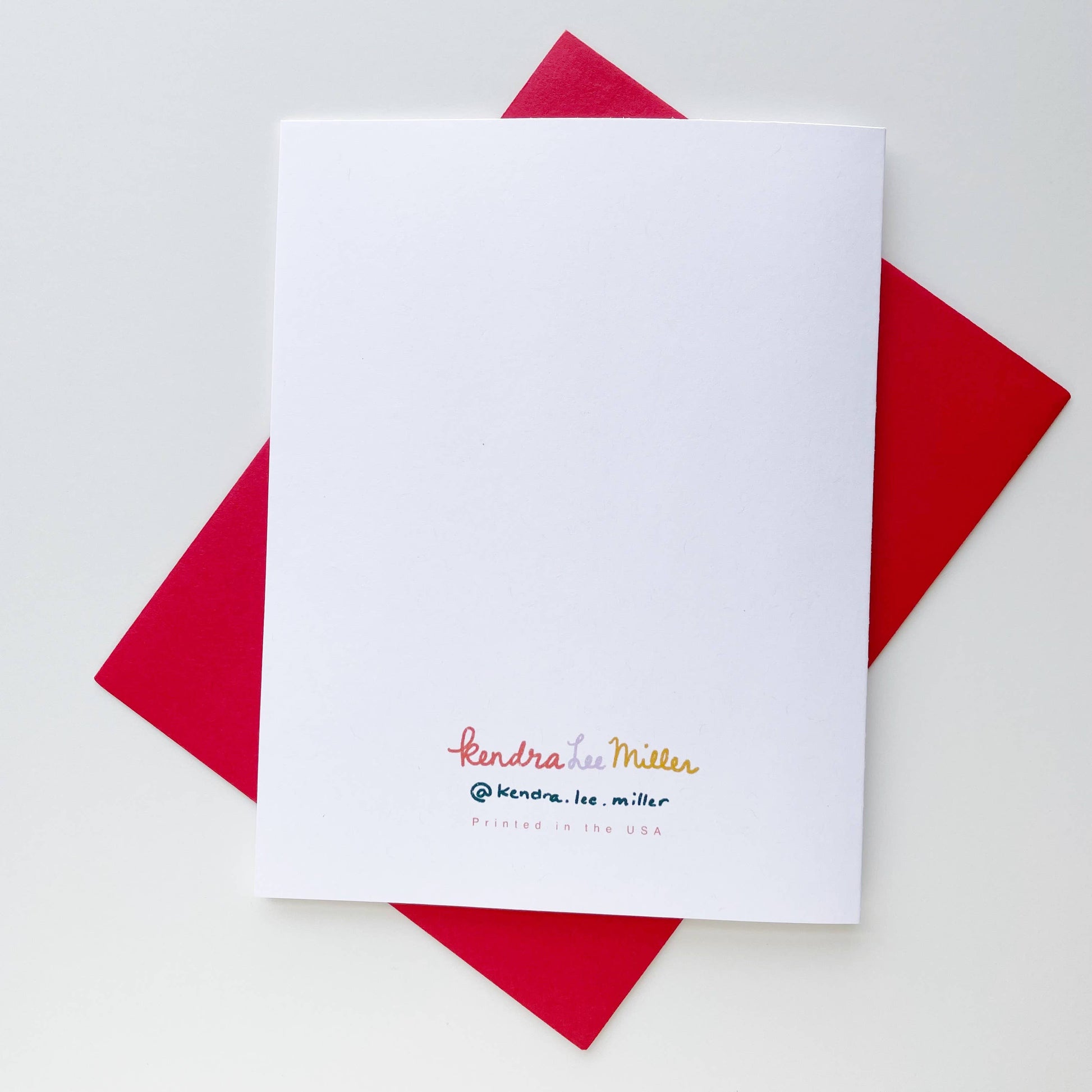 Kendra Lee Miller illustration of two cocktail shrimp laying side by side to form a heart on a bed of lettuce. The card says You're Shrimply the Best. Perfect for Valentine's Day but can also be displayed all year! -Blank Inside for your own message! -A2, Measures 4.25 x 5.5 inches -Printed on recycled 100 lb white speckletone cardstock with archival ink. -Cards are individually placed in recyclable cello sleeve with coordinating envelope - Designed, printed, and assembled locally in Strafford, MO. **Speckletone Cardstock is made of recycled paper and has varying specks and spots throughout each sheet-making each card unique! Specks on the paper are not considered flaws.**
